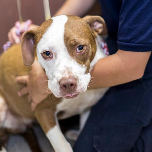 This is MILLIE…ASHER’s sister… she is far more shy than ASHER and more troubled by the sounds of the shelter. MILLIE is Pittie/Boston Terrier mix although her colors are very different than her sister’s. MILLIE is a sweet heart but scared to death in the shelter. She is going to need a loving and warm hearted soul to love the fear out of her. Do you happen to know anyone like that?